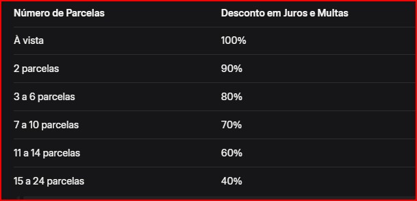 O grande atrativo do Refis reside nos descontos generosos em juros e multas, que podem chegar a 100% para pagamentos à vista. Essa modalidade é ideal para quem busca uma solução rápida e definitiva, zerando pendências sem custo adicional. Para aqueles que preferem flexibilidade, o parcelamento em até 24 vezes oferece condições escalonadas, adaptadas ao fluxo de caixa pessoal ou empresarial. Veja a tabela de benefícios: