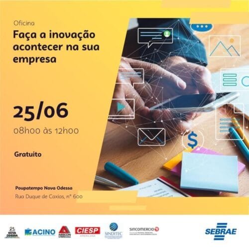 Capacitação acontece dia 25 no CRET com vagas limitadas Nova Odessa ganha mais uma oportunidade de capacitação empresarial gratuita com o curso “Faça a Inovação Acontecer na Sua Empresa”, promovido pelo Sebrae-SP no próximo dia 25 de junho. A iniciativa reforça o compromisso da instituição em democratizar o acesso ao conhecimento empresarial para pequenos empreendedores […]